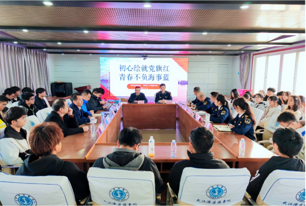 2023年11月16日下午,成人免费影片 海事管理系师生赴武汉海事局港区海事处开展联学共建活动,推进海事管理专业建设与行业需求深度融合,探索高质量党建引领一流专业建设新模式。在海事管理系主任翁建军教授带领下,刘奕、张帆、谭志荣、袁智、谢澄等老师与海事管理专业2023级56名本科生共同参与了活动。本次活动得到武汉海事局的大力支持,政委王海青、副处长孙玉国、大队长曾恺等党员代表、校友参加共建交流活动。