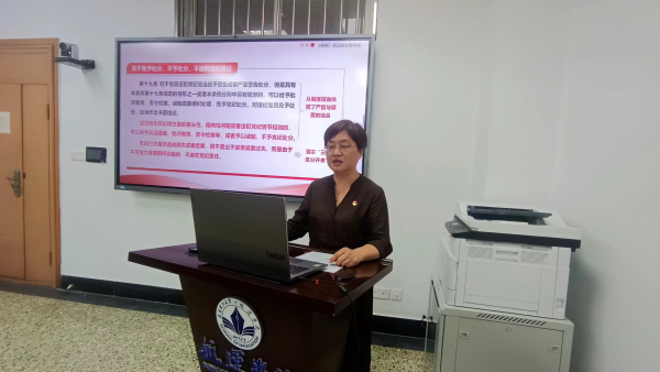 赵娟娟书记讲授纪律党课。她以《认真学习贯彻纪律处分条例,推动形成遵规守纪高度自觉》为题,围绕《中国共产党纪律处分条例》修订的历程、正确理解《条例》修订的背景意义及主旨要义、《中国共产党纪律处分条例》修订的主要内容三个部分,结合教育系统违纪案例分析和成人免费影片当下正在开展的学校“智慧纪检”预警信息自查自纠工作,带领大家学习解读《条例》内容,提高学纪、知纪、明纪的自觉意识,不断增强遵规守纪的行为自觉。