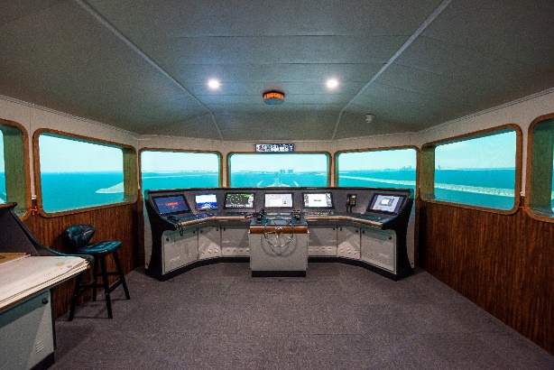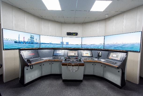 该实验包含六自由度船舶操纵模拟1套、270度智能驾控平台1套、Sperry真设备模拟器1套和全任务船舶操纵模拟器6套,可进行复杂工况下船舶航行、靠离泊操纵、拖轮协同操纵、泊稳试验、船舶远程驾控和虚拟测试等各类航海仿真模拟试验。