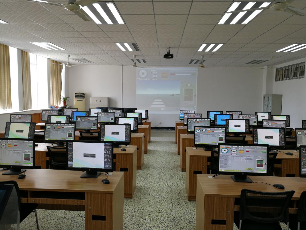 该实验室包含80套电子海图模拟终端和4套电子海图真设备,可进行全球水域电子海图操作培训、海图应用综合演练等实验实训教学。