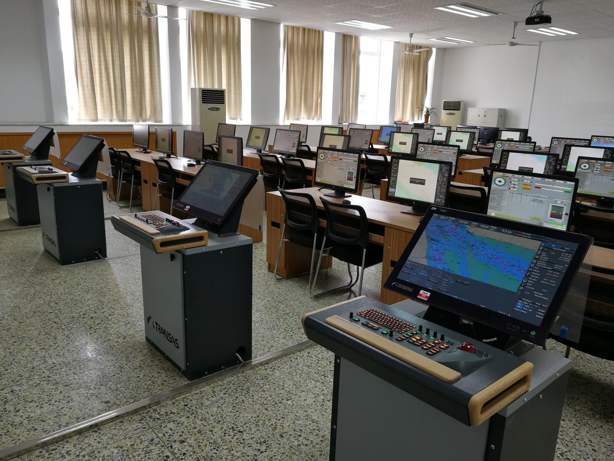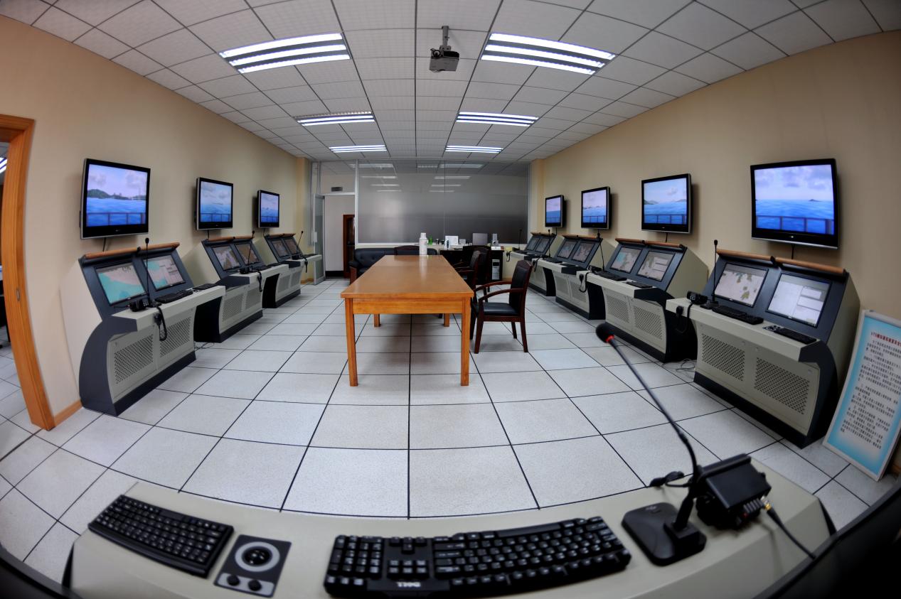 航海仿真实验室由大型船舶操纵模拟器实验室、电子海图显示与信息系统模拟实验室和船舶交通服务(Vessel
