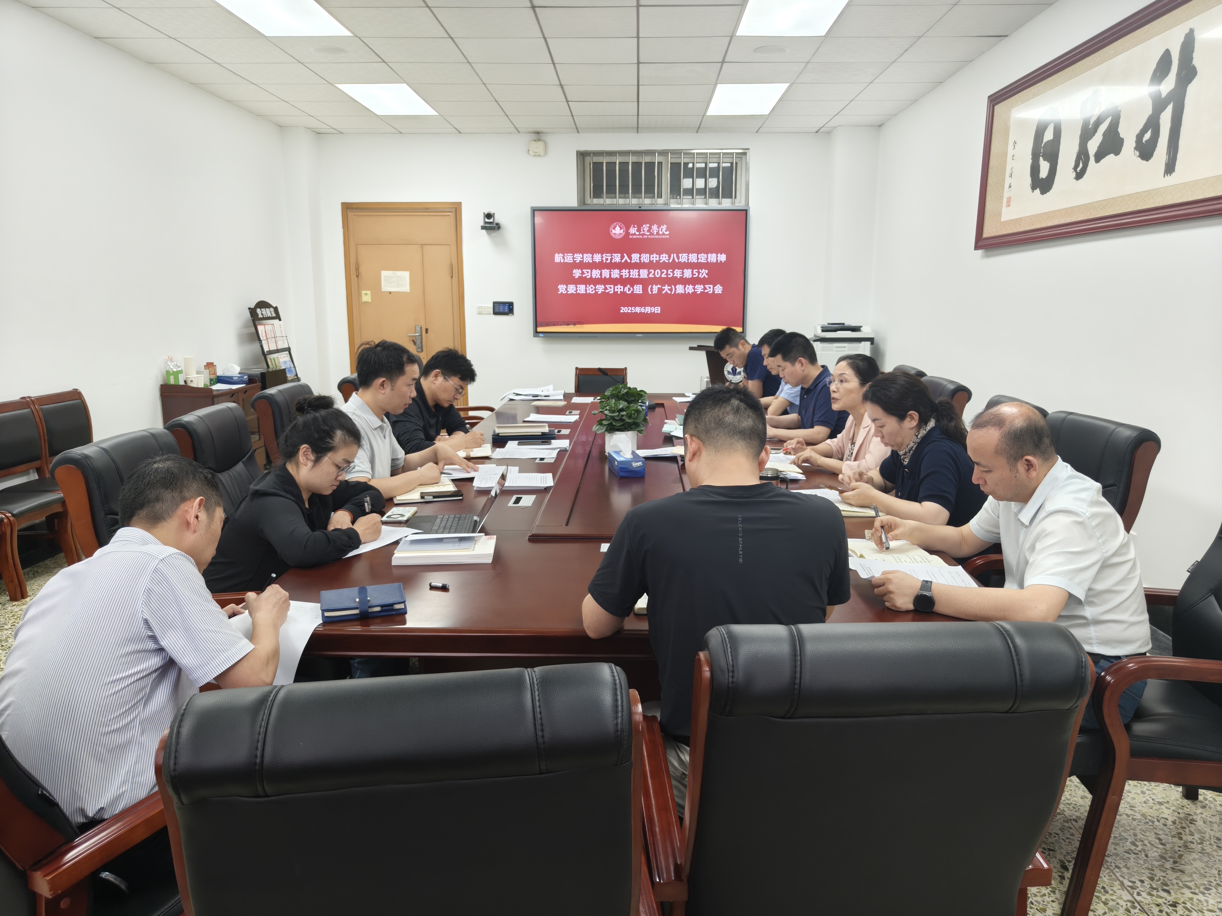 6月9日,成人免费影片党委在3009会议室举行深入贯彻中央八项规定精神学习教育读书班暨2025年第5次党委理论学习中心组(扩大)集体学习会。成人免费影片党委理论学习中心组成员、纪委委员、教工党支部书记参加会议。院党委书记侯俊主持会议。