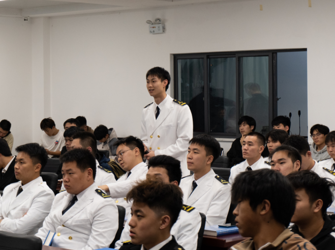 廖宏珍船长结合自己的人生轨迹、高级船长工作经历,围绕“航运业发展战略、大学生活建议、如何坚定航海信念”等方面展开。他从船员就业方向、职业发展前景讲起,讲述航运业发展历程,鼓励“卓越工程师”班同学们继承“招商血脉”“蛇口基因”“海辽精神”,坚定航海事业理想,坚守自己的专业选择;希望同学们传承“厚德博学、追求卓越”校训,珍惜这次难得的机会,扎实学习专业本领,发挥自己的聪明才智,早日历练成为一名“卓越工程师”,将目光锁定更美好的未来,蓄势、逐浪,成就航海梦,为建设海洋强国作出贡献。