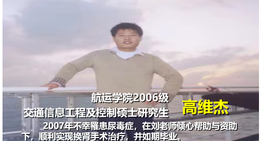 刘敬贤教授将研究生指导工作看作一门艺术,在日常教导中注重严慈相济、立德树人。坚持在学生培养过程中严格要求,在学生生活中时刻给予关爱。研究生高维杰在读期间身患尿毒症,诊断结果需要进行换肾手术,刘敬贤老师即刻将自己准备用于老家装修的4万元钱悉数给他用于治疗,每周定期到医院看望,直至战胜病魔,并在毕业期间积极帮助高维杰同学顺利毕业、按时就业,从根本上解决生活问题,现在已经成为山东交通成人免费影片航海专业的骨干教师。